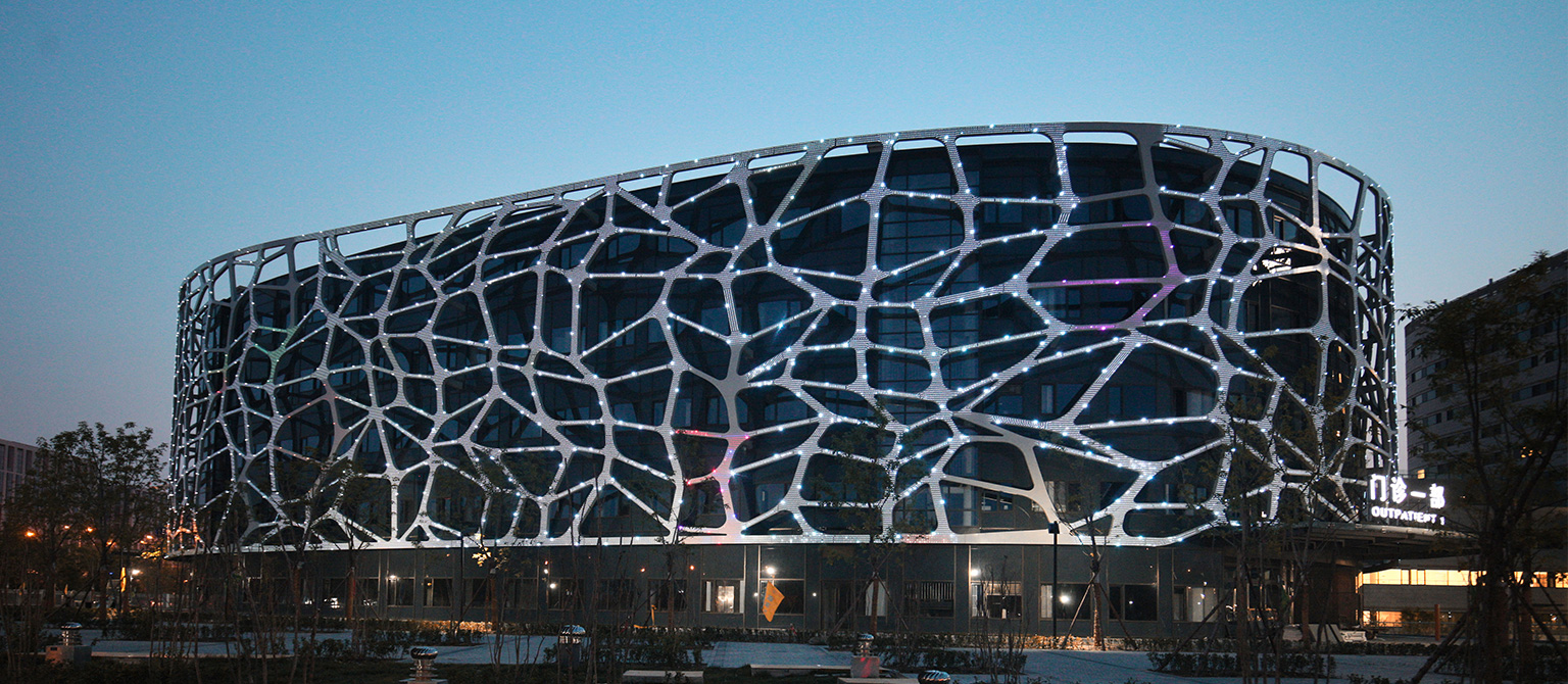 1)外遮陽技術(shù):??崎T診樓外側(cè)象征神經(jīng)元的遮陽表皮進行遮陽。